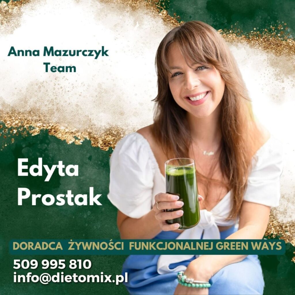 Jestem Edyta, założycielka platformy Dietomix. Od 2016 roku zajmuję się dietetyką. Zielonki stały się częścią mojego życia, gdy pierwszy raz poddałam się detoksowi, który pomógł mi z problemami zdrowotnymi. W 2023 roku zdiagnozowano u mnie SIBO i IMO, co było wynikiem IBS. Tradycyjne leczenie okazało się nieskuteczne, dlatego wróciłam do zielonek, które stosuję od 4 miesięcy. Odczuwam znaczną poprawę – mogę jeść normalne produkty bez objawów jelitowych, mam więcej energii i poprawiłam pracę układu trawiennego oraz mikrobiom jelitowy.