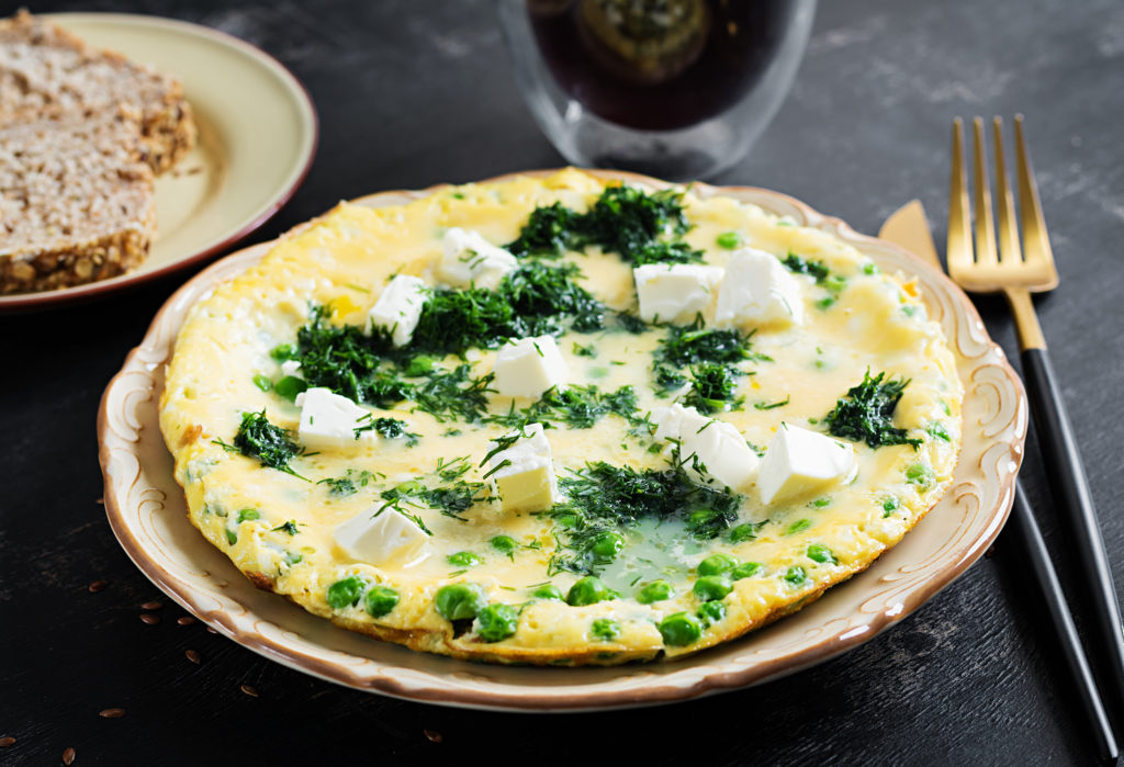 Omlet z zielonym groszkiem i serem feta
